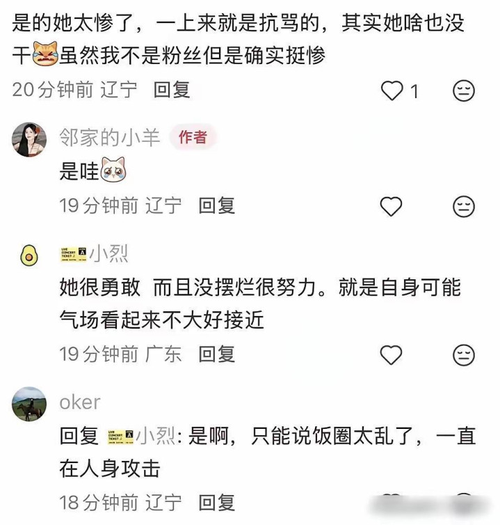 擅自里她是个随心萧洒的小太阳,不内讧、不纠结,哪怕舞台经常翻车,也能安心罗致,以致会自我捉弄,这份心态难能贵重。