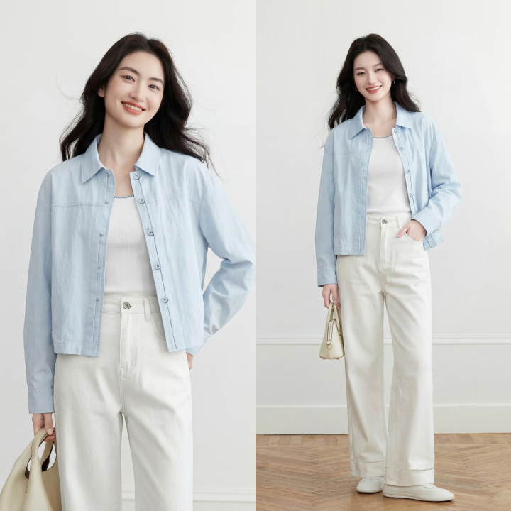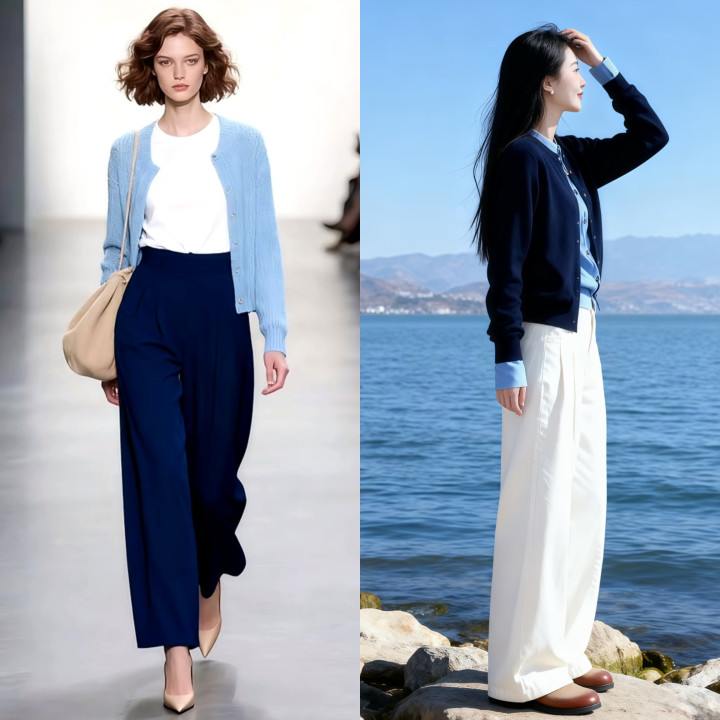 其实,春天穿搭不需要太复杂,热诚堆砌过多,反而显错落。浅近的“蓝色+白色”组合就很高等,干净知晓又耐看,要害这组搭配它不挑年齿和身体,任何东说念主王人不错穿。