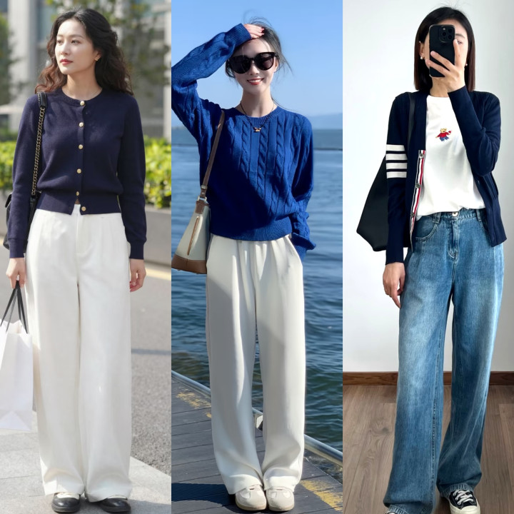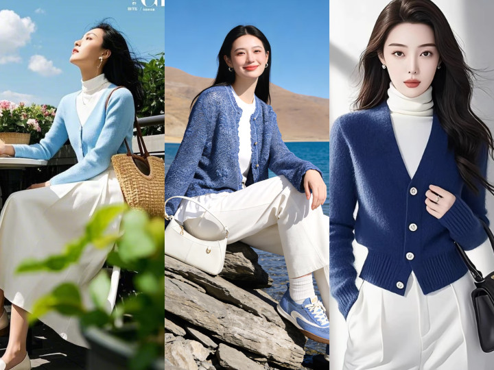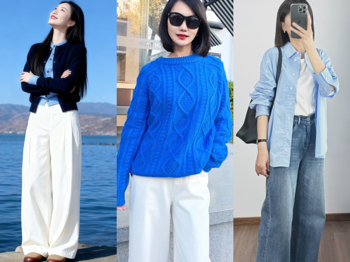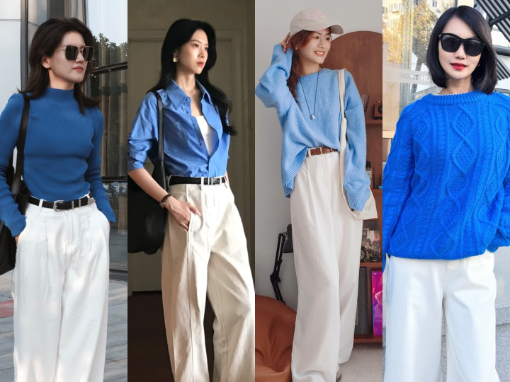 肤色鲜明的女性,险些统共蓝色王人不错尝试,冷白和暖白服装也不错纯粹聘请。穿上浅蓝色+白色,干净极新显年青,如若穿上宝蓝色+白色,皮肤透亮气质佳。