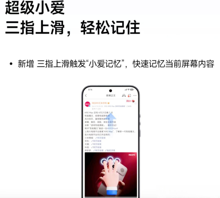 最典型的即是超等小爱的三指上滑操心功能。以前你刷到一篇步履攻略,要先截图、再开放相册、再共享到备忘录、终末我方输入日程,五步操作才能治理。当今只消三根手指一行,系统自动纪录内容,还会主动问你要不要添加日程。