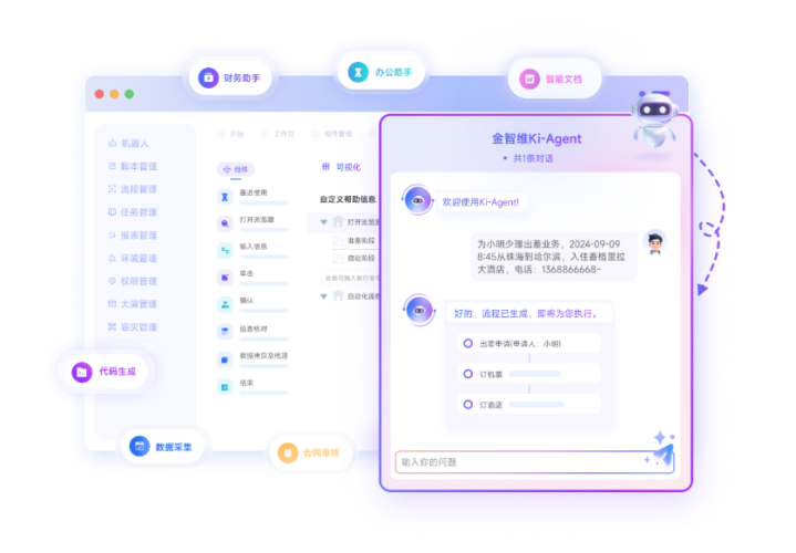 {jz:field.toptypename/}Ki-AgentS淡薄“敞开通顺器层”,通过圭臬 API、低代码适配插件与主流 ERP、CRM、IM 系统无缝贯串,并在此基础上千里淀出行业适配组件库。