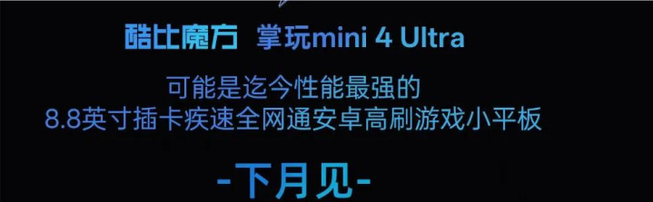 本周,国内平板厂商“酷比魔方”官宣将于3月发布新品,掌玩mini4 Ultra。
