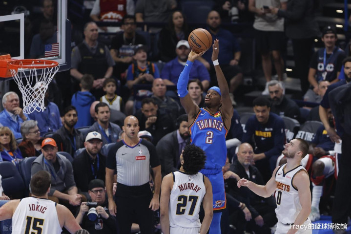再次主场打败掘金,亚历山大基本上锁定MVP了。上半场他弹无虚发,投篮9中8,罚球1中1,砍下17分6篮板7助攻。
