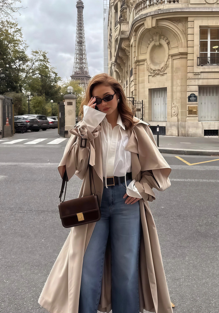 你看那些街拍里,穿风衣配牛仔裤的女生,莫得一个看起来很刻意的,都是很松驰的情状,但即是面子!这种搭配险些不挑东说念主,你只须把风衣往身上一披配一条牛仔裤,毋庸作念太多盘算穿上就对了。