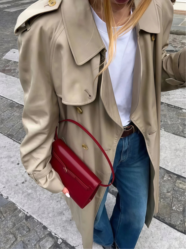 原因① “风衣+牛仔裤”,轻松多礼两不误