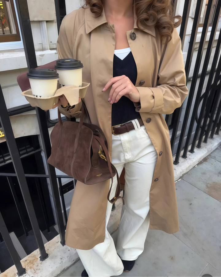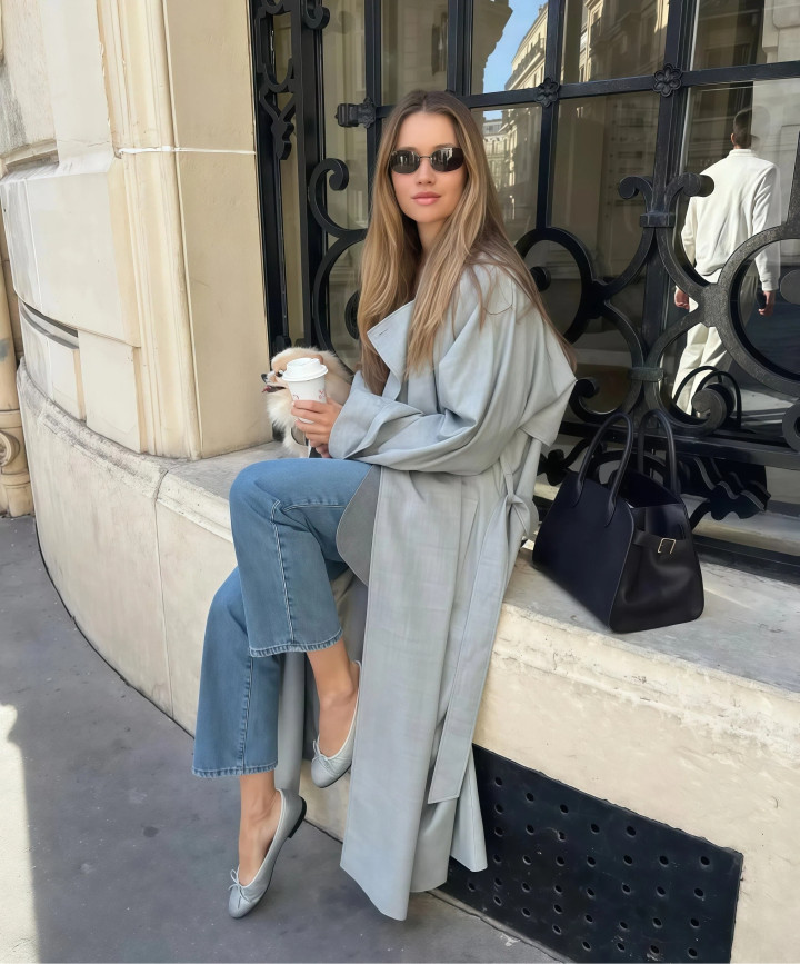 你衣柜里约略率还是有一件风衣和一条牛仔裤了澳门新浦京app,这个早春把它们搭在沿路穿,内部配一件肤浅的内搭脚上踩一对心爱的鞋子,裁汰舒坦的外出就好。