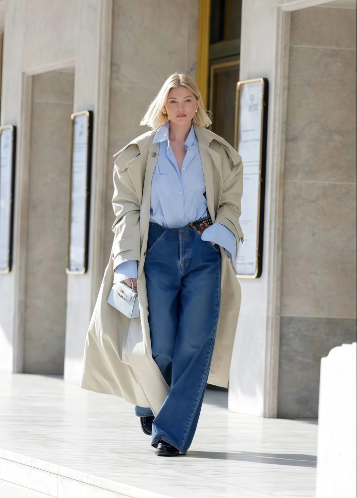 【第三节】“风衣+牛仔裤”的搭配示范,就看这些女东说念主的搭配示范!